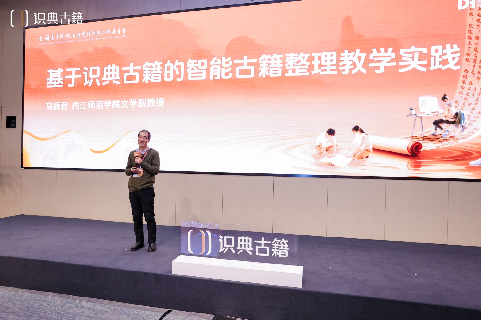在下午的第一分论坛中,马振君博士作了题为《基于识典古籍的智能古籍整理教学实践》的报告,他从成果简介、课程建设、面临问题三个方面做了经验分享,获得了评议专家的肯定。马博士的报告引起了与会学者的兴趣,会后多位学者和多家出版社的编辑与马振君博士就相关问题进行了深入交流。