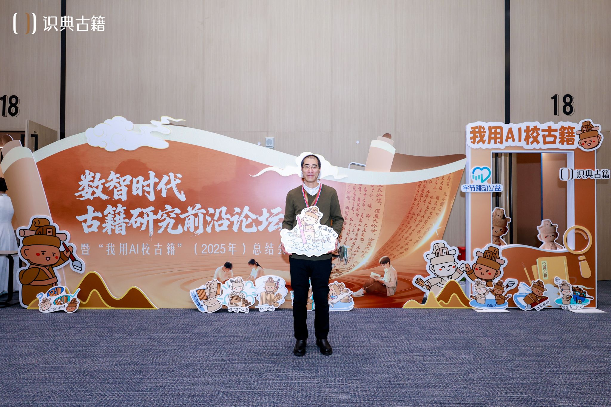会议在字节跳动北京大钟寺工区1号楼三楼会议中心召开。会议分两大阶段,上午为主论坛,下午设立两个分论坛。主论坛中与会领导和学者的致辞与报告,既有对国家文化数字化战略背景下的顶层设计的深入剖析和对古籍数智化的未来展望,也有具体技术层面的思考与典型案例的分享。抖音集团企业社会责任部古籍项目经理张明月对2025年的“我用AI校古籍”项目做了全面的总结,特别列举了我院的教学实践案例。