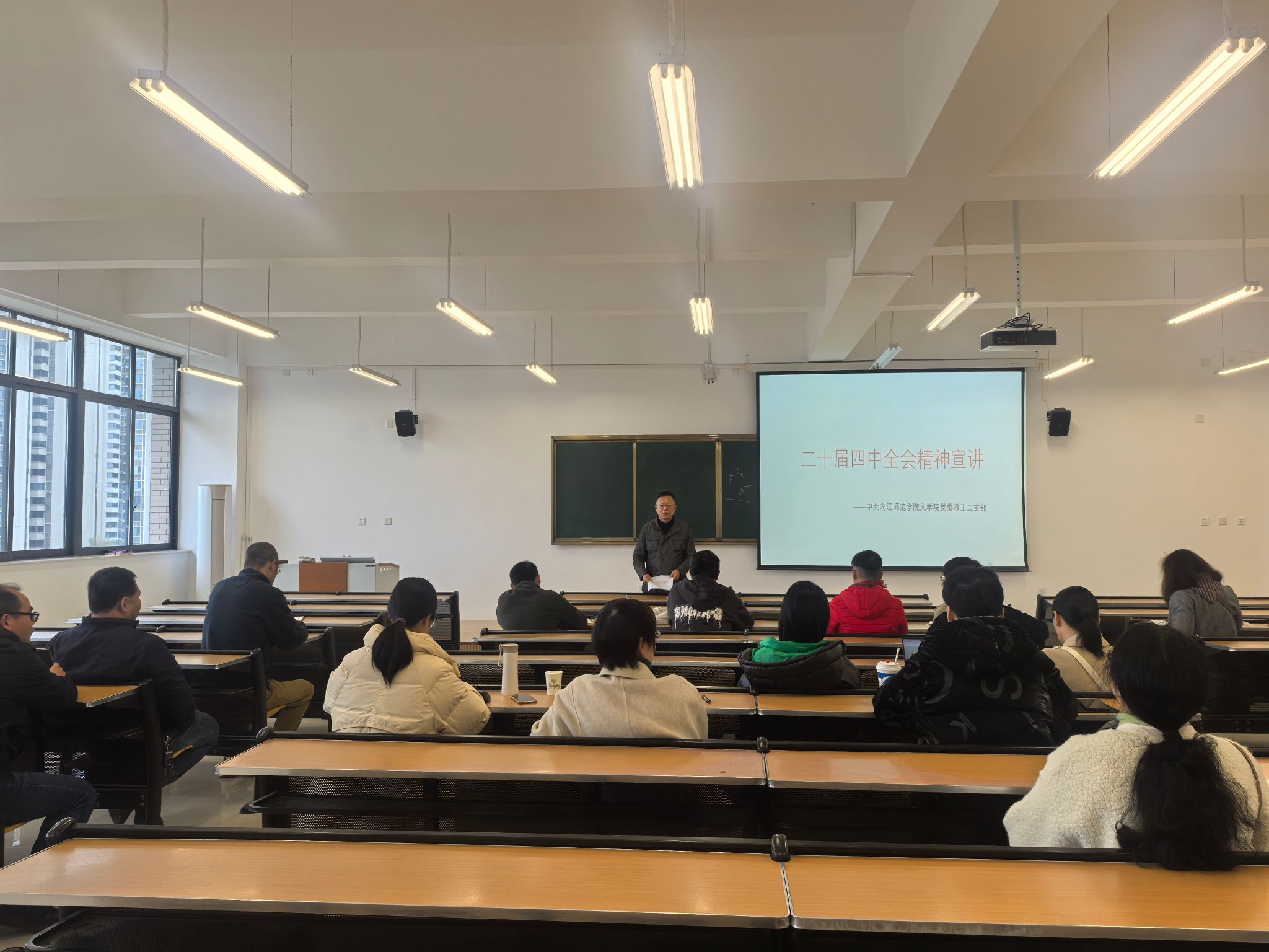 11月17日下午,文学院党委教工第二党支部在弘文楼502教研活动室开展了党的二十届四中全会精神专题学习会。学习会由教工第二党支部书记黄全彦主持,支部全体党员参加了会议。