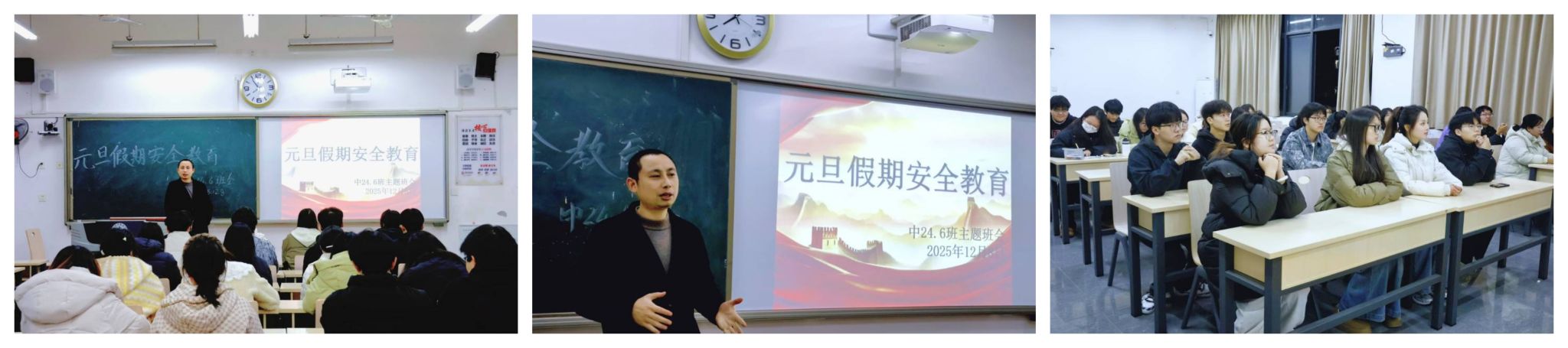 此次主题班会有效提升了同学们的安全防范意识和自我保护能力,既为同学们平安、健康、充实度过元旦假期提供坚实保障,也为我院扎实推进假期安全管理工作奠定了良好基础。