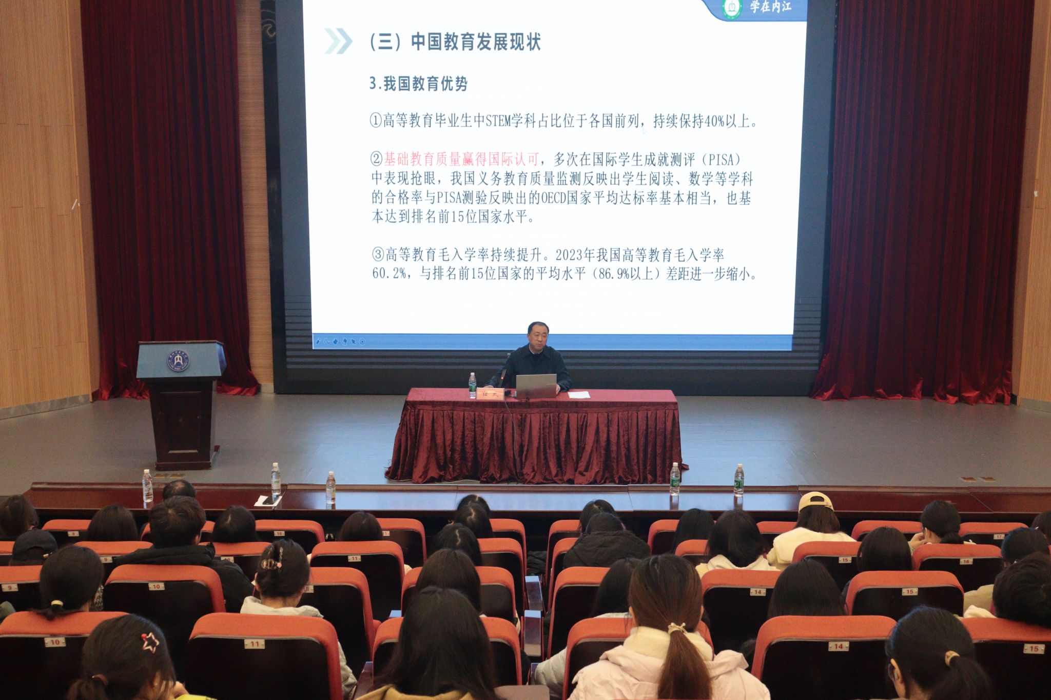 任副局长在讲座中结合身边鲜活案例,寄语在场学子:“无论是选择继续深造还是投身教育一线,县域高中都将是你们施展才华的广阔舞台。当前,国家对优秀教师的需求日益迫切,待遇保障也在不断完善。你们在校期间所学的教学技能与沟通技巧,到了县中课堂上都能发挥重要作用。希望同学们珍惜在校时光,为未来投身祖国教育事业积蓄力量。”