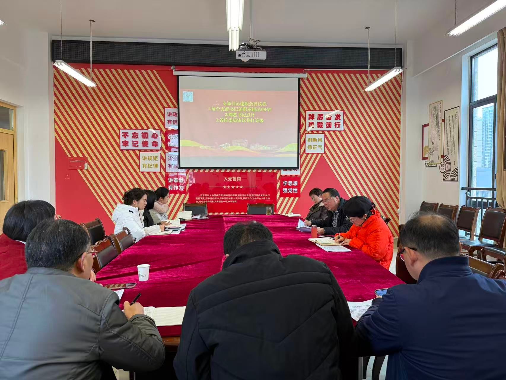 党委委员结合日常工作和现场表现,对5位书记进行量化打分。经无记名投票,张宪军、代思韫评定为“优秀”等次,其余3位书记为“合格”。